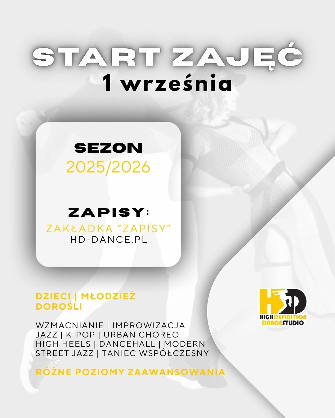 „NIE WIEM JESZCZE JAKIE ZAJĘCIA WYBRAĆ” – to zrozumiałe, nasza oferta jest dość szeroka, na pewno znajdziesz coś dla siebie! Spójrz na grafik, zobacz jakie terminy Ci odpowiadają. Możesz zajrzeć na nasz kanał Youtube – odnośnik znajdziesz w prawym górnym rogu strony lub pod tym linkiem: https://www.youtube.com/@highdefinitiondancestudio8839 i obejrzeć nagrania z występów wszystkich naszych grup, może to będzie pomocne przy podjęciu decyzji na jakie zajęcia się zapisać 🙂